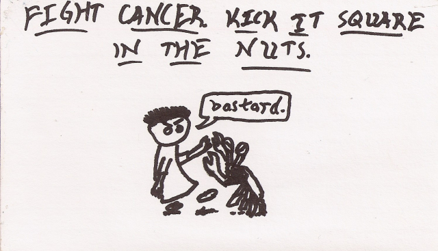 We bumped into some friends of ours, a family who, like us, has three boys who are being asked at the moment for bravery such as is asked of too many as they support their mum through her treatment.  Seeing them walking together (Mum too) was inspiration indeed. My love to all those I know who are fighting this dreadful illness.  You are all, without exception, unspeakably brave and I am proud to be your friend.