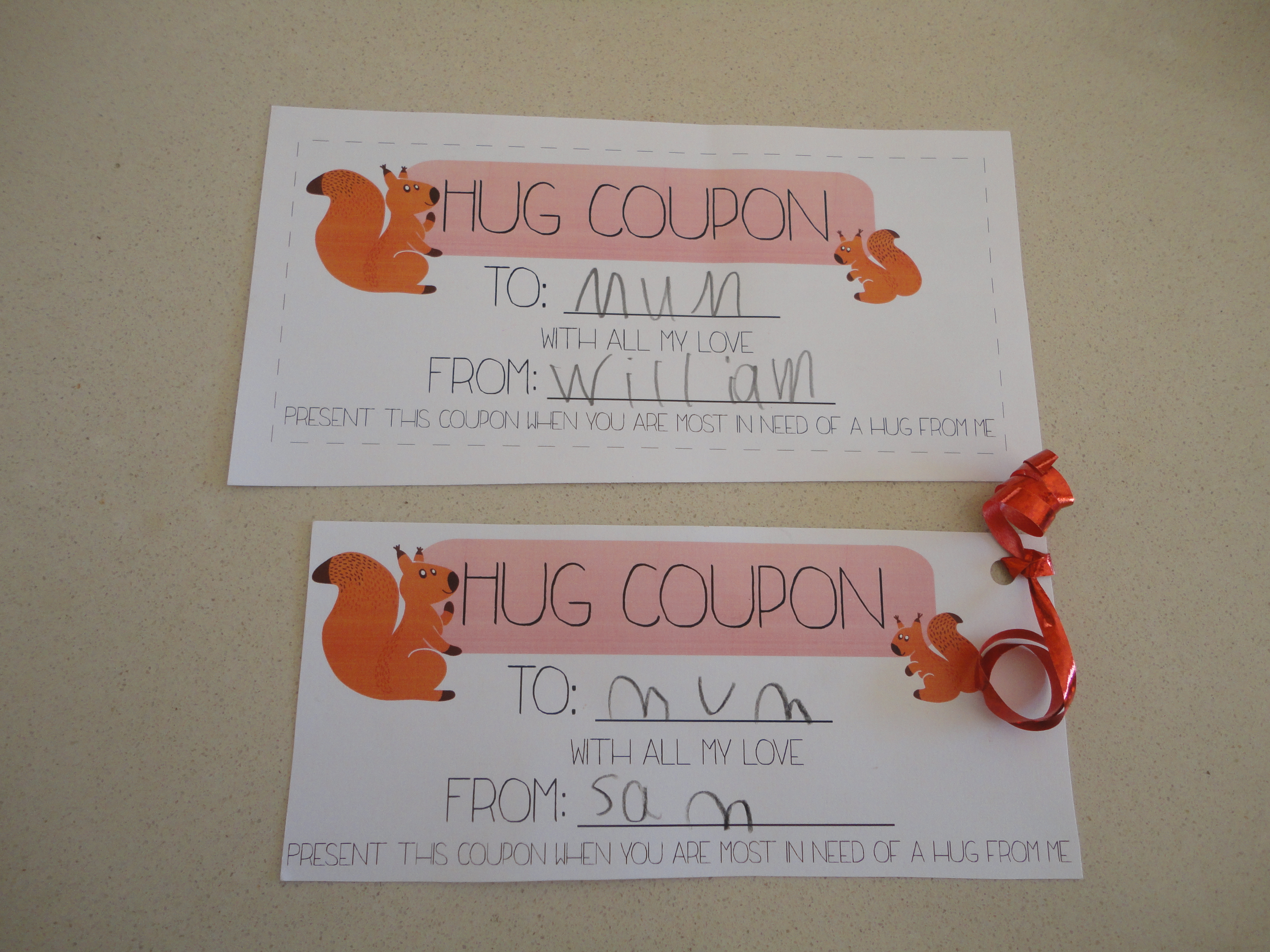 Luckily I get a yes whenever I need a hug, but just in case... (By the way, I did get a pressie from Sam - a bag of delicious choc chip cookies, eaten before they could be photographed!