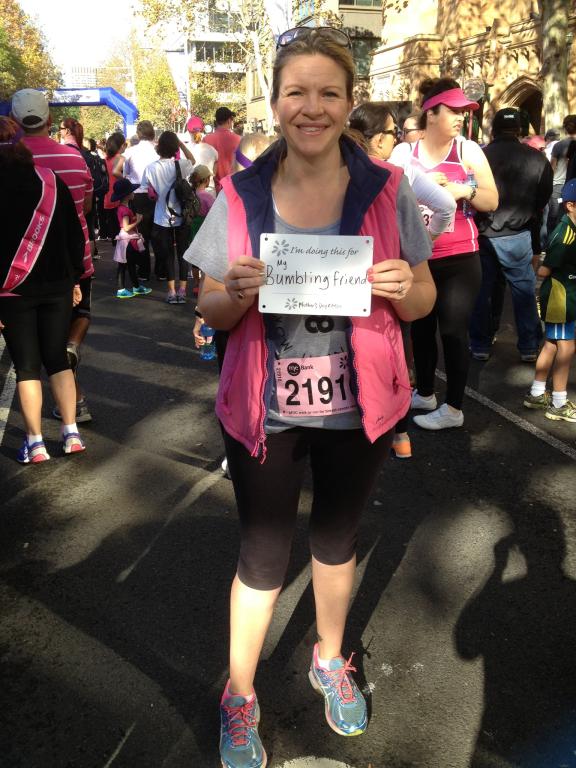 The most poignant moment of Sunday was following a family in the Mother’s Day Classic who wore on their backs a variety of messages for one person; ‘Mum’, ‘Mother-in-law’ and ‘Grandma’ scribbled in a childish hand.  The atmosphere at the event struck me again, the hope and determination of everyone there palpable.